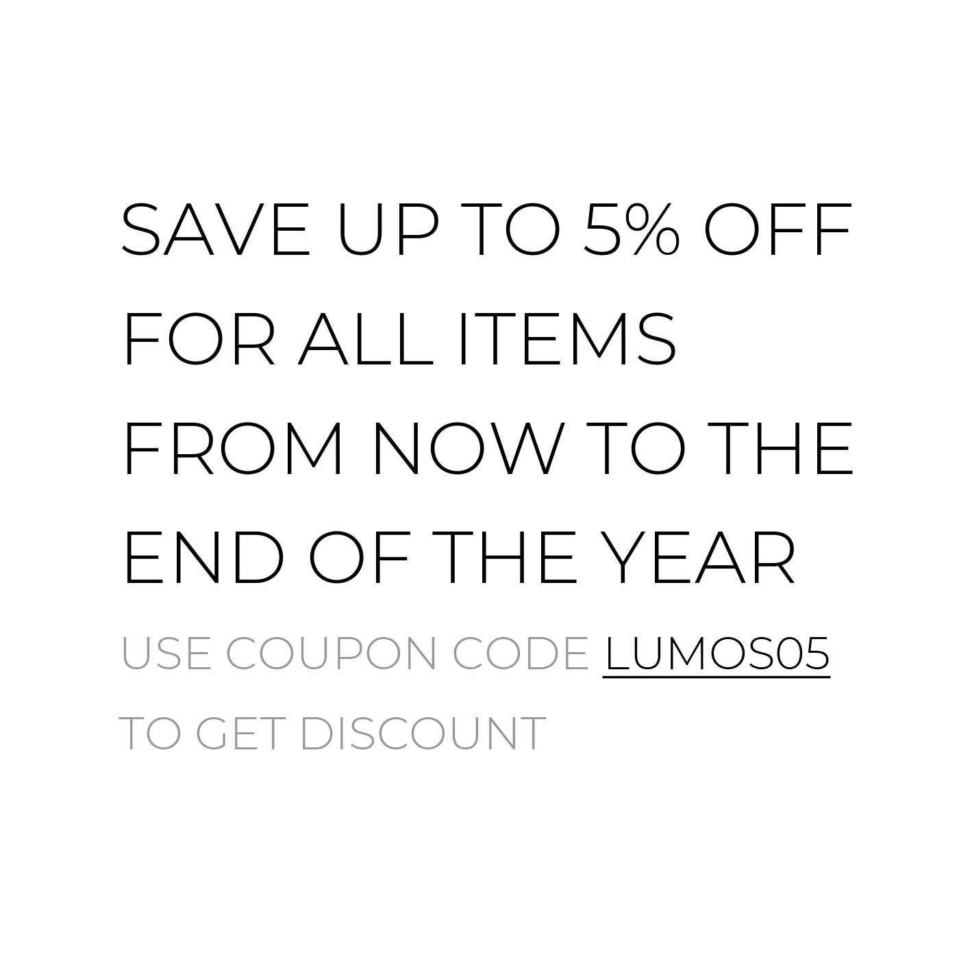 SAVE UP TO 5% OFF FOR ALL ITEMS FROM NOW TO THE END OF THE YEAR