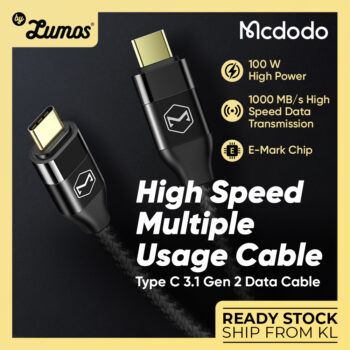𝗠𝗖𝗗𝗢𝗗𝗢 𝗖𝗔-𝟳𝟭𝟯 High Speed Multiple Usage Cable Gold Plated 5A 20V 100W PD USB C To USB C Cable