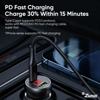 𝗠𝗖𝗗𝗢𝗗𝗢 𝗖𝗖-𝟳𝟬𝟯𝟬 45W Fast Car Charge For Dual Ports Pd+Qc USB Car Charger With Digital Display