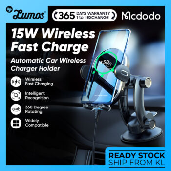 𝗠𝗖𝗗𝗢𝗗𝗢 𝗖𝗛-𝟳𝟲𝟮𝟬 Intelligent Reminder With Led Air Mount Stander 2 in 1 Car Phone Holder 15W Wireless Charger