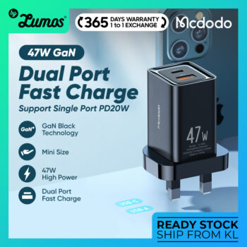 𝗠𝗖𝗗𝗢𝗗𝗢 𝗖𝗛-𝟴𝟱𝟵 Dual Port Fast Charge Support PD 3.0 Mini Size 47w High Power