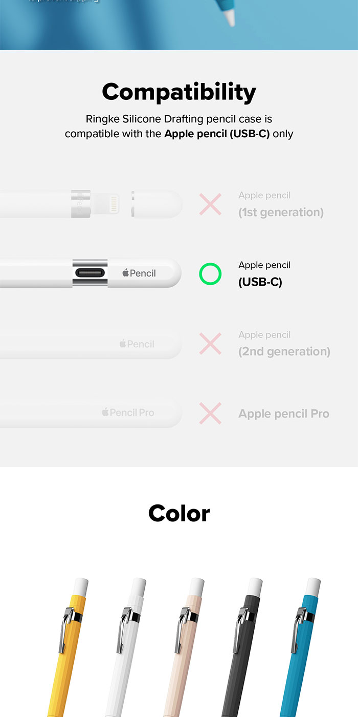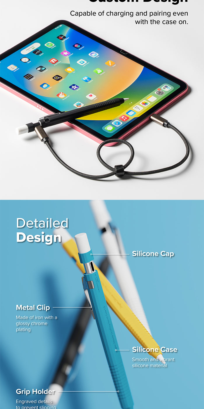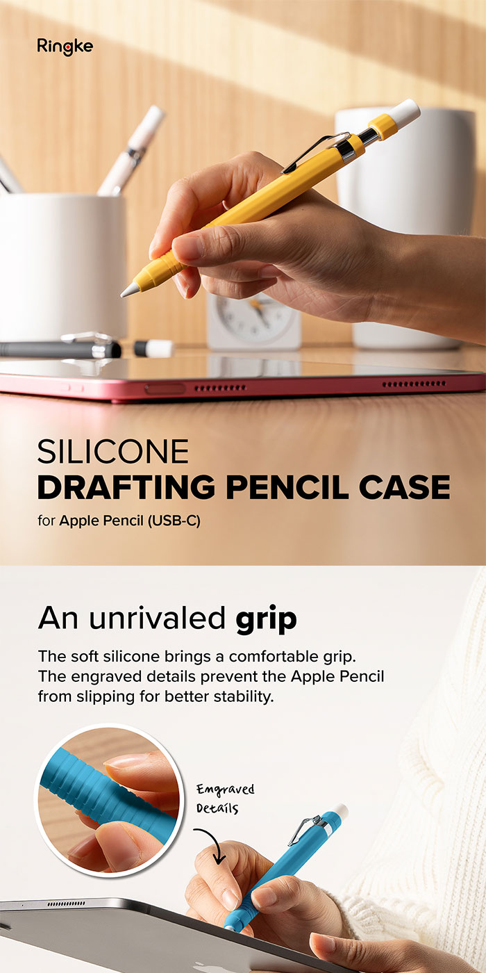This case is designed for the Apple Pencil (USB-C) with a classic mechanical pencil look. It feels great in your hand thanks to the premium silicone grip. The metal clip makes it easy to store and carry around. You can charge quickly through the USB-C port without taking the case off. It also attaches securely to your iPad with the magnetic connection. Please note, the Apple Pencil is not included.