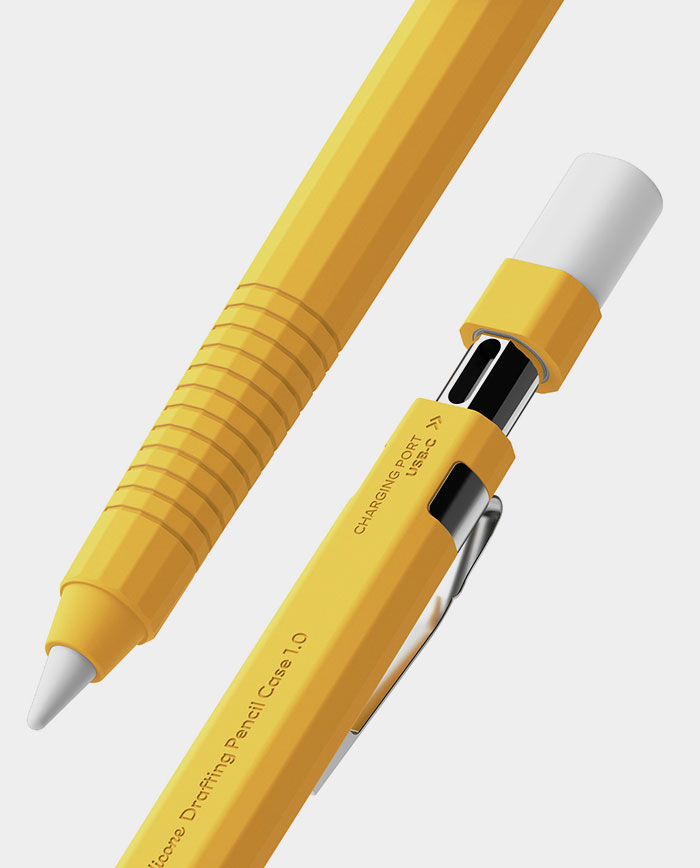 This case is designed for the Apple Pencil (USB-C) with a classic mechanical pencil look. It feels great in your hand thanks to the premium silicone grip. The metal clip makes it easy to store and carry around. You can charge quickly through the USB-C port without taking the case off. It also attaches securely to your iPad with the magnetic connection. Please note, the Apple Pencil is not included.
