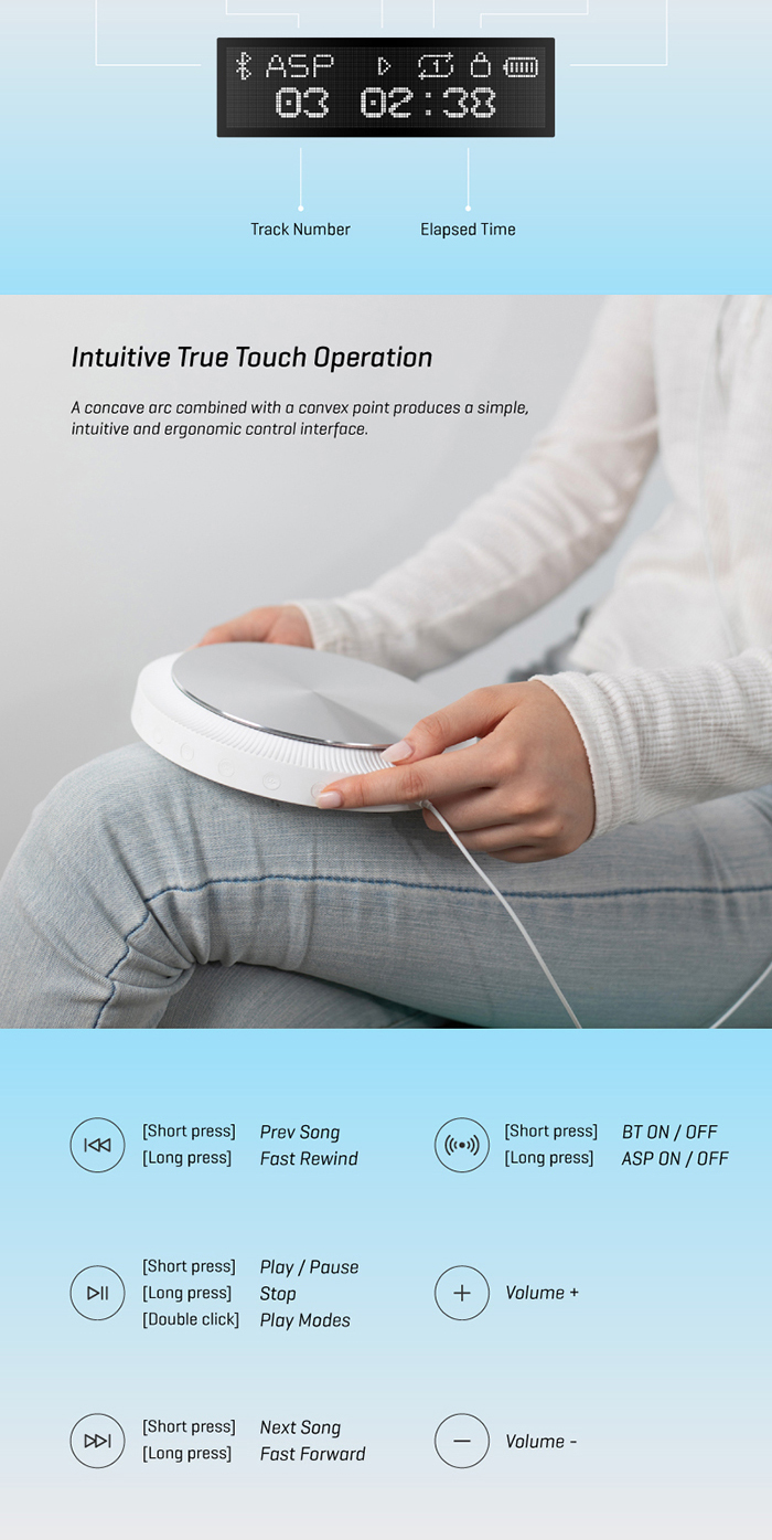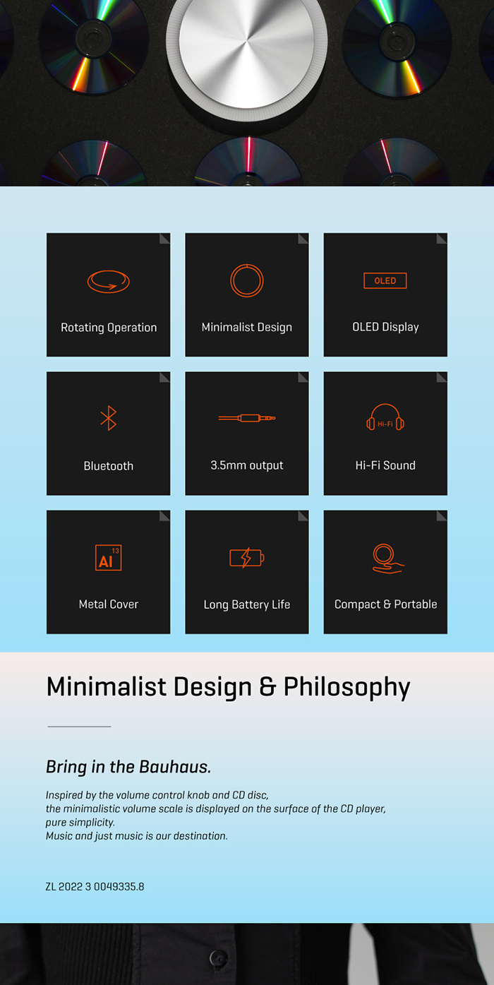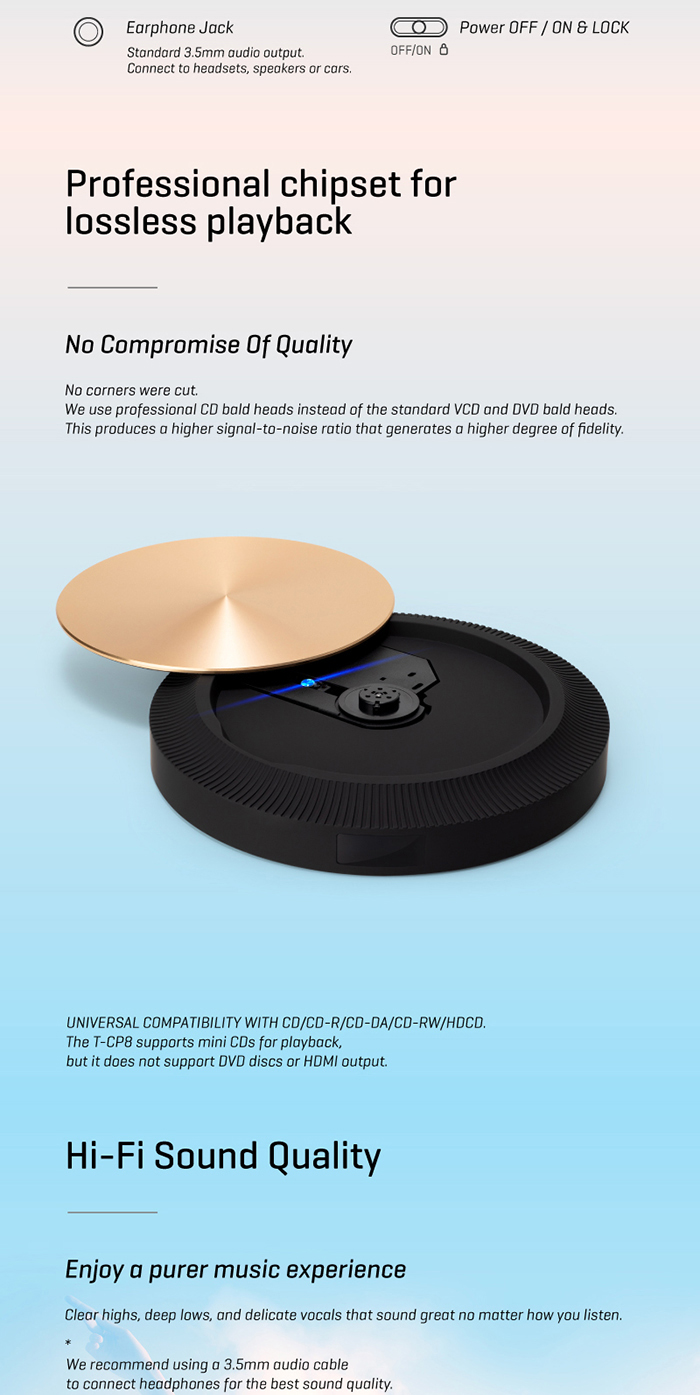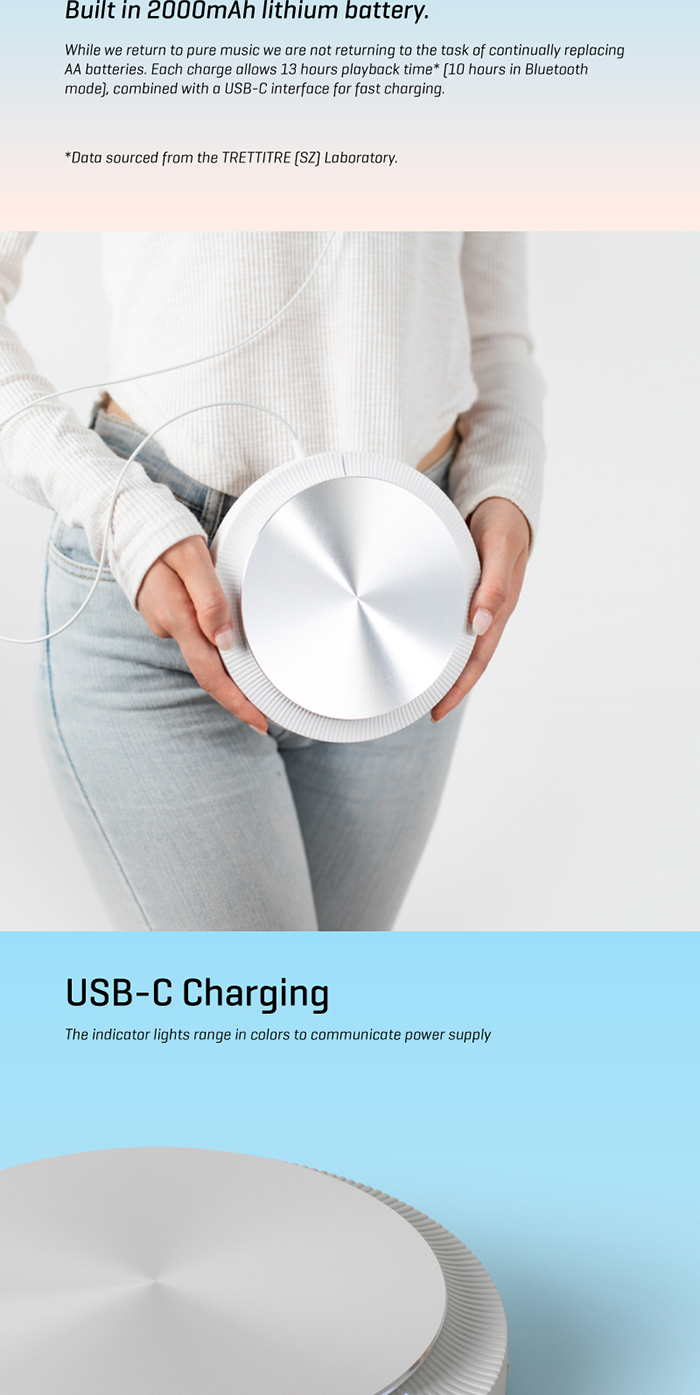 TRETTITRE T-CP8 Portable CD Player is a sleek and compact device with Bluetooth connectivity for on-the-go music. Its minimalist design includes an aluminium cover and OLED display, supporting multiple CD formats for a modern take on classic listening.