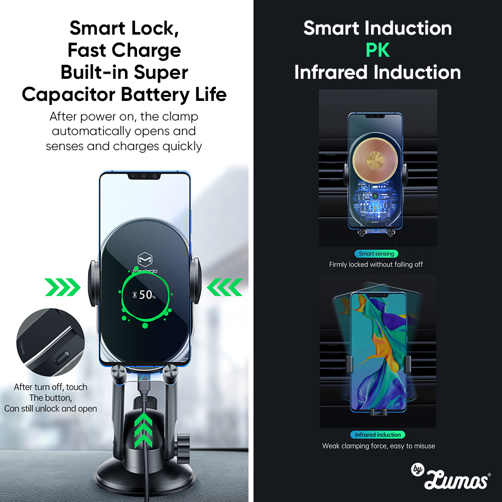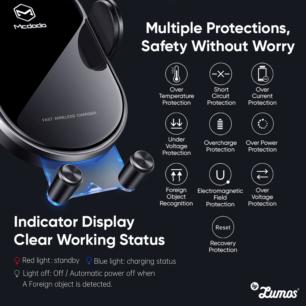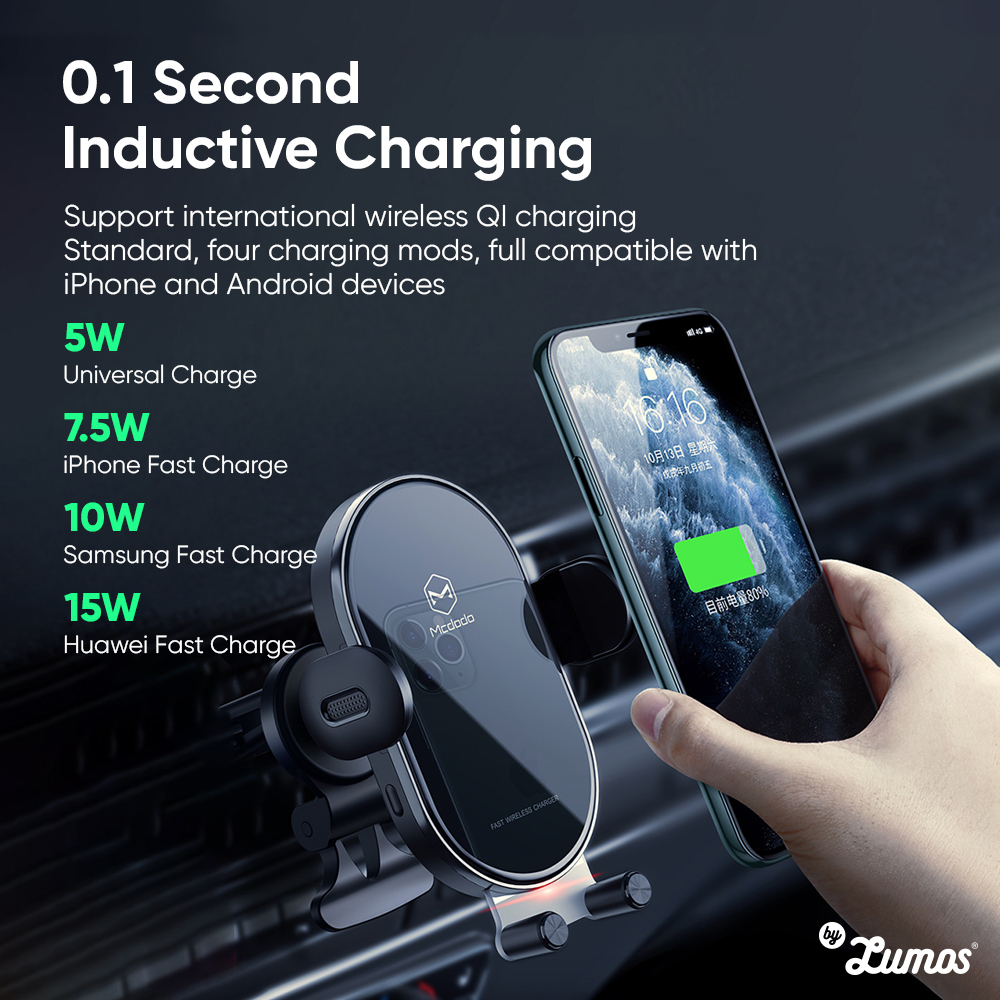 𝗠𝗖𝗗𝗢𝗗𝗢 𝗖𝗛-𝟳𝟲𝟮𝟬 Intelligent Reminder With Led Air Mount Stander 2 in 1 Car Phone Holder 15W Wireless Charger