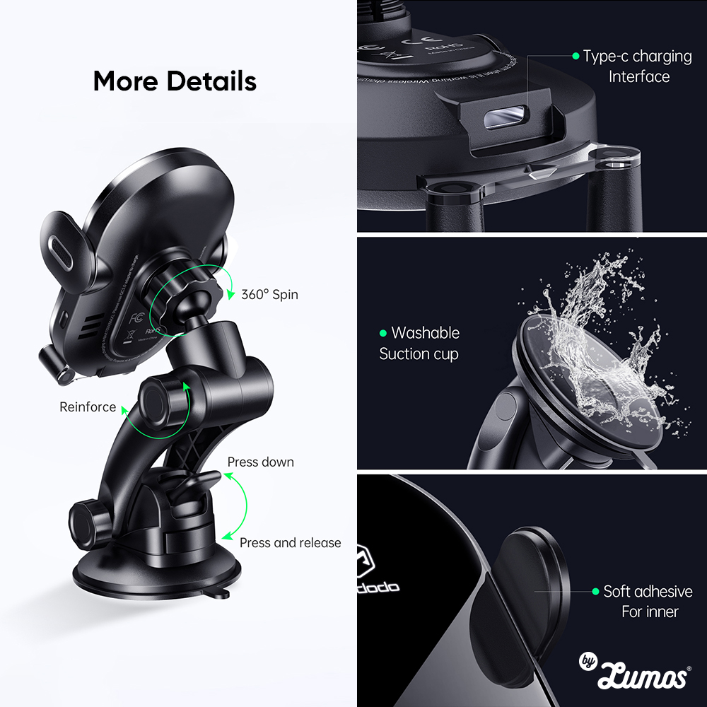 𝐅𝐞𝐚𝐭𝐮𝐫𝐞:360 adjustment, automatic arms phone holder, 15w wireless charging, Led indicator